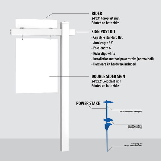 Real Estate Bundle 1: Sign Post + For Sale Sign + Rider